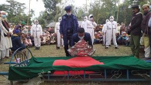 বীর মুক্তিযোদ্ধা মো. আব্দুর রহিমের মরদেহ দাফনের আগে জেলা পুলিশের একটি চৌকস দল গার্ড অব অনার প্রদান করেন। এসময় সহকারী কমিশনার (ভূমি) ও নির্বাহী ম্যাজিস্ট্রেট কাউছার আহাম্মেদ, উপজেলা আওয়ামী লীগের সাধারণ সম্পাদক বীর মুক্তিযোদ্ধা শফিকুল ইসলাম জিন্নাহ, উপজেলা মুক্তিযোদ্ধা সংসদ কমান্ড কাউন্সিলের সাবেক কমান্ডার বীর মুক্তিযোদ্ধা আবুল মনসুর, নকলা থানার তদন্ত কর্মকর্তা আবুল হাসিম, উপজেলা আওয়ামী লীগের সাংগঠনিক সম্পাদক ও উরফা ইউপির চেয়ারম্যান রেজাউল হক হীরা, হালুয়াঘাট উপজেলা আওয়ামী লীগের সাধারণ সম্পাদক ও উপজেলা মুক্তিযোদ্ধা সংসদ কমান্ড কাউন্সিলের সাবেক কমান্ডার, নকলা ও হালুঘাট উপজেলার বেশকিছু মুক্তিযোদ্ধাসহ এলাকার গন্যমান্য ও ধর্মপ্রাণ সাধারণ মুসলিম জনতা উপস্থিত ছিলেন।