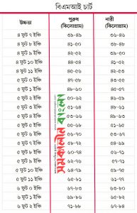 জেনে নিন উচ্চতা অনুযায়ী ওজন কত হওয়া দরকার