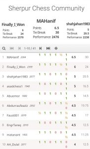 ৪.৫ পয়েন্ট করে নিয়ে আব্দুর রউফ আজিজ, ফাউস্ট , ইঞ্জিঃ তারেক ৬ষ্ঠ থেকে ৮ম স্থান অধিকার করেছেন