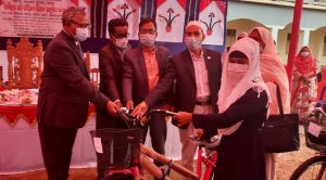 এ উপলক্ষে ১৯ ফেব্রুয়ারি শুক্রবার উপজেলার ভায়াডাঙ্গা ইউনিয়নের হাঁসধরা এলাকায় স্থাপিত হালিমা আহ্সান টেকনিক্যাল (বিএম) ইনষ্টিটিউটের মাঠে ১০০ মেয়ে শিক্ষার্থীর মাঝে নিরাপদ যাতায়াতের বাহন হিসেবে বাই-সাইকেল বিতরণ অনুষ্ঠানের আয়োজন করা হয়।