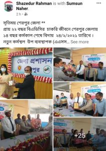 কৃষিবিদ মো. সাজেদুর রহমান বিদায় সংবর্ধনা নিয়ে নতুন কর্মস্থলে পৌঁছে শেরপুর জেলায় তাঁর কর্মজীবনের কিছু স্মৃতিময় লেখা ফেইসবুকে প্রকাশ করেছেন। নিচে তাঁর আবেগময় লেখাটুকু হুবহু তুলে দেওয়া হলো।