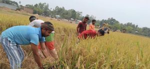 উপজেলা ছাত্রলীগ কর্মী আবু হামযা কনকের নেতৃত্বে উপজেলার অর্ধশত শিক্ষার্থী এলাকার দরিদ্র ও অসহায় বর্গাচাষীদের মুখে হাসি ফুটাতে কোমরে-মাথায় গামছা বেধে কাস্তে হাতে বোরো ধানের মাঠে ধান কেটে যাচ্ছেন।