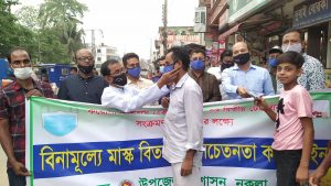 শেরপুরের নকলা উপজেলায় করোনা ভাইরাস (কোভিড-১৯) এর দ্বিতীয় ঢেউ মোকাবেলায় সংক্রমণ প্রতিরোধে বিনামূল্যে মাস্ক বিতরণ ও সচেতনতা ক্যাম্পেইন অনুষ্ঠিত হয়েছে। ১১ মে মঙ্গলবার বিকেলে পৌরশহরের বিভিন্ন মহল্লা ও সড়ক ঘুরে ঘুরে পথচারীদের মাঝে বিনামূল্যে মাস্ক বিতরণ করা হয় এবং বর্তমান করোনা ভাইরাসের ভয়াবহতা সম্পর্কে সকলকে সচেতন করা হয়।