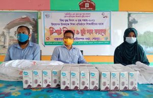 এ উপলক্ষে সরকারের নির্দেশনা মোতাবেক শারীরিক দূরত্ব বজায় রেখে ও স্বাস্থ্য বিধি মেনে জেলা প্রাণিসম্পদ কর্মকর্তা ডা. মো. আব্দুল হাই-এর সভাপতিত্বে শিক্ষার্থীদের দুধ পান করানো ও তাদের মাঝে বিনামূল্যে টি-শার্ট বিতরণ অনুষ্ঠানের আয়োজন করা হয়।