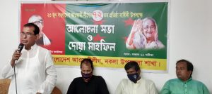 পরে উপজেলা যুবলীগের অস্থায়ী কার্যালয়ে উপজেলা আওয়ামী লীগের সহ-সভাপতি ফেরদৌসুর রহমান জুয়েলের সভাপতিত্বে ও যুগ্ম সম্পাদক শহীদুল ইসলামের সঞ্চালনায় সীমিত পরিসরে ও স্বাস্থ্যবিধি মেনে আলোচনা সভা ও মিলাদ মাহফিল অনুষ্ঠিত হয়। এতে প্রধান আলোচক হিসেবে বক্তব্য রাখেন উপজেলা আওয়ামী লীগের সাধারণ সম্পাদক বীর মুক্তিযোদ্ধা শফিকুল ইসলাম জিন্নাহ। আলোচনা সভায় অন্যান্যদের মধ্যে বক্তব্য রাখেন- উপজেলা আওয়ামী লীগের সহ-সভাপতি ও চৌধুরী ছবরুন নেছা মহিলা কলেজের অধ্যক্ষ আব্দুল খালেক, যুগ্ম সম্পাদক ও পৌরসভার মেয়র হাফিজুর রহমান লিটন প্রমুখ।