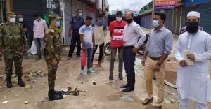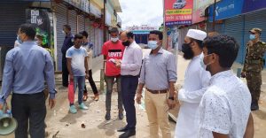 কঠোর বিধি-নিষেধ কার্যকর করতে শুক্রবার দিনব্যাপী উপজেলা নির্বাহী অফিসার জাহিদুর রহমান, সহকারী কমিশনার (ভূমি) ও এক্সিকিউটিভ ম্যাজিস্ট্রেট কাউছার আহাম্মেদ এবং সহকারী কমিশনার ও এক্সিকিউটিভ ম্যাজিস্ট্রেট সালাউদ্দিন বিশ্বাস-কে পৌরশহরের বিভিন্ন গলিসহ উপজেলার বিভিন্ন ইউনিয়ন এলাকায় নিজে মাইকের মাধ্যমে অপ্রয়োজনে বাহিরে বের না হতে জনগনকে সচেতন করতে ও সকলকে মাস্ক পরিধান করতে নির্দেশক্রমে অনুরোধ জানাতে দেখা গেছে।