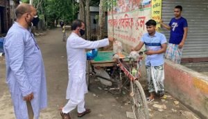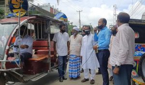 সোমবার (২৬ জুলাই) দুপুরের দিকে সরেজমিনে দেখা যায়, উপজেলার নকলা ইউনিয়নের অন্তত ২টি বাজারসহ বিভিন্ন এলাকায় উপজেলা আওয়ামী লীগের সাধারণ সম্পাদক বীর মুক্তিযোদ্ধা শফিকুল ইসলাম জিন্নাহ বেটারী চালিত অটো রিক্সায় চড়ে নিজে মাইক হাতে নিয়ে মাইকিং করছেন। তাছাড়া চলার পথে যাদের মাস্ক পরিধান করা নেই দেখছেন তাদের মাঝে বিনামূল্যে মাস্ক বিতরণ করছেন তিনি।