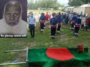 শেরপুর জেলার নকলা উপজেলার বীর মুক্তিযোদ্ধা মো. আজগর আলীর মরদেহ রাষ্ট্রীয় মর্যাদায় দাফন করা হয়েছে। বুধবার (২৮ জুলাই) বিকাল ৩টার সময় উপজেলার পাঠাকাটা ইউনিয়নের জাঙ্গীরার পাড় সরকারি প্রাথমিক বিদ্যালয় মাঠে পুলিশের একটি চৌকস দল গার্ড অব অনার প্রদান করেন এবং উপজেলা নির্বাহী অফিসার (ইউএনও) জাহিদুর রহমান মরহুমের প্রতি শ্রদ্ধা জানাতে পুষ্পার্ঘ্য অর্পণ করেন। পরে জাঙ্গীরার পাড় সরকারি প্রাথমিক বিদ্যালয় মাঠেই মরহুমের জানাজা নামাজ অনুষ্ঠিত হয়।