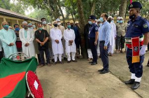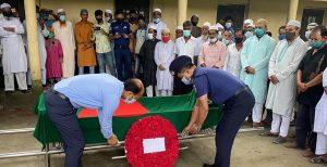 মঙ্গলবার (২৪ আগস্ট) সকাল ১১টার সময় নকলা সরকারি পাইলট উচ্চ বিদ্যালয় মাঠে পুলিশের একটি চৌকস দল গার্ড অব অনার প্রদান করেন এবং উপজেলা নির্বাহী অফিসার (ইউএনও) জাহিদুর রহমান মরহুমের প্রতি রাষ্ট্রীয় শ্রদ্ধা জানাতে থানার ওসি মুশফিকুর রহমানকে সাথে নিয়ে পুষ্পার্ঘ্য অর্পণ করেন। পরে ওই মাঠেই মরহুমের জানাজা নামাজ অনুষ্ঠিত হয়। জানাজা নামাজ শেষে কায়দা বাজারদী গোরস্থানে তাঁর মরদেহ সমাহিত করা হয়।
