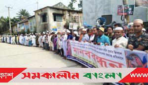 ভারতে হযরত মুহাম্মদ (সা) সম্পর্কে কুরুচিপূর্ণ মন্তব্য করায় নকলায় মানববন্ধন