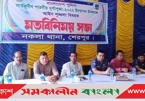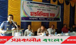 বাংলাদেশ পুলিশ নকলা থানার আয়োজনে উপজেলা, পৌরসভা ও বিভিন্ন ইউনিয়ন পূজা উদযাপন কমিটির নেতৃবৃন্দের সাথে এ মতবিনিময় সভা করা হয়।