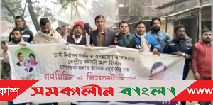 নকলায় ভোটকেন্দ্রে না যাওয়ার পক্ষে বিএনপির গণসংযোগ লিফলেট বিতরণ