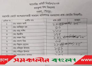 প্রিজাইডিং অফিসার ও উপজেলা মাধ্যমিক শিক্ষা কর্মকর্তা মোঃ আব্দুর রশিদ জানান শন্তিপূর্ণ ভাবে ভোট গ্রহন শেষে সকল প্রতিদ্বন্দ্বীর পোলিং এজেন্ডদের উপস্থিতিতে ভোট গণনা করে ফলাফল ঘোষনা করা হয়েছে।
