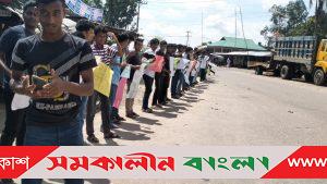 চলমান কোটা সংস্কার ও মেধাভিত্তিক নিয়োগে সরকারি পরিপত্র বহাল রাখার দাবিতে কোটা সংস্কারের আন্দোলনরতদের সঙ্গে একাত্মতা ঘোষণা করে মানববন্ধন করেছেন শেরপুরের নকলা উপজেলার সর্বস্তরের সাধারণ শিক্ষার্থীরা। বুধবার (১৭ জুলাই) সকাল ১০ টার দিকে বঙ্গবন্ধু চত্ত¡রের সামনে ৪০ মিনিট ব্যাপি শান্তিপূর্ণ মানববন্ধন ও প্রতিবাদ সভা করা হয়।