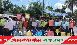 মানববন্ধন শেষে উপজেলার বিভিন্ন শিক্ষা প্রতিষ্ঠানের শিক্ষার্থীরা প্রতিবাদ সমাবেশ করতে চাইলে পুলিশের মৌখিক বাধায় তারা বঙ্গবন্ধু চত্ত¡রের সামনে থেকে সড়ে গিয়ে মুক্তিযোদ্ধা স্মৃতিবিদ্যা নিকেতনের সামনে সংক্ষিপ্ত প্রতিবাদ সমাবেশ করেন। এ সময় বক্তরা সারা দেশে চলমান কোটা সংস্কারের পক্ষে আন্দোলনের পক্ষে বিভিন্ন যুক্তি তুলে ধরেন।
