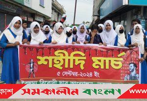 গণঅভ্যুত্থানে হাসিনা সরকারের পতনের একমাস পূর্তি উপলক্ষে বৈষম্যবিরোধী ছাত্র আন্দোলনে নিহতদের স্মরণে শহীদি মার্চ (মিছিল) করেছে বৈষম্যবিরোধী শিক্ষার্থীরা। বৃহস্পতিবার (৫ সেপ্টেম্বর) দুপুরের দিকে নকলা উপজেলা বৈষম্যবিরোধী ছাত্রদের আয়োজনে এই স্মরণীয় মিছিল অনুষ্ঠিত হয়।