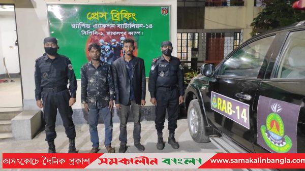 শেরপুরের নকলায় দেশীয় তৈরী পাইপগান ও বিপুল পরিমাণ গাঁজাসহ জামালপুর জেলার এরশাদ আলী (৩৫) ও আব্দুল জলিল (২২) নামে ২ মাদক ব্যবসায়ীকে গ্রেফতার করেছে র্যাপিড এ্যাকশন ব্যাটালিয়ন (র্যাব)-১৪। গ্রেফকতারকৃত এরশাদ