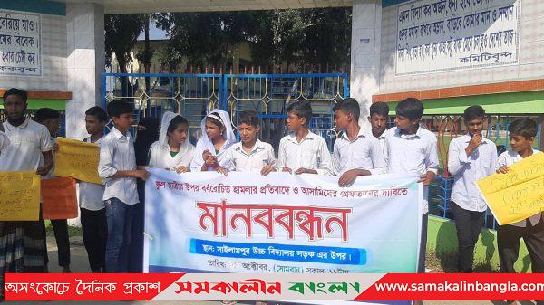 শেরপুরের নকলা উপজেলায় স্কুল পড়ুয়া ছাত্রীর উপর হামলার প্রতিবাদে ও অভিযুক্ত আসামীদের গ্রেফতার দাবীতে মানব বন্ধন করেছে এলাকাবাসীসহ শিক্ষার্থীরা। সোমবার (৩১ অক্টোবর) সকাল ৯ টার সময় উপজেলার চরঅষ্টধর ইউনিয়নের ইসলামনগর