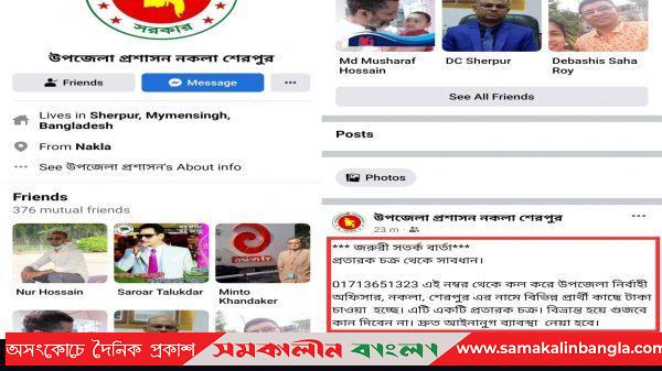 শেরপুর জেলার নকলা উপজেলার নির্বাহী কর্মকর্তা (ইউএনও)-এঁর অফিসিয়াল বা সরকারি ০১৭১৩-৬৫১৩২৩ মোবাইল নম্বরটি ক্লোন করেছে সাইবার ক্রিমিনালরা। ২৩ নভেম্বর (মঙ্গলবার) দিবাগত রাত ১১টা থেকে বুধবার (২৪ নভেম্বর) সকাল ৯টার মধ্যে
