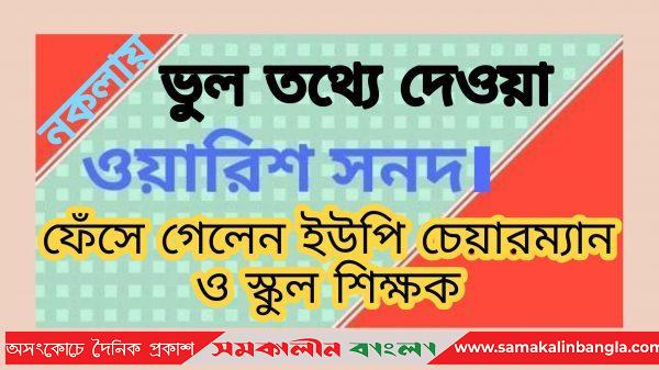 শেরপুরে নকলায় এক প্রাথমিক বিদ্যালয়ের সহকারী শিক্ষক নাজমুল ইসলাম (৪৩) কর্তৃক সৎ মা ও ভাই-বোনের তথ্য গোপন রেখে ভুল তথ্য সম্বলিত আদনের প্রেক্ষিতে সরলমনে ওয়ারিশান সনদ দেওয়ায় ফেঁসে গেছেন উপজেলা