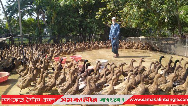 শেরপুর জেলার নকলা উপজেলাধীন ধুকুড়িয়া গ্রামের অবসরপ্রাপ্ত অধ্যাপক মো. মাহবুবুর রহমান বিদ্যুৎ। বর্তমানে তিনি হাঁসের খামার থেকে মাসে যে আয় করছেন, তা বেসরকারি কলেজের এমপিও ভুক্ত একজন অধ্যাপকের বেতনের চেয়ে