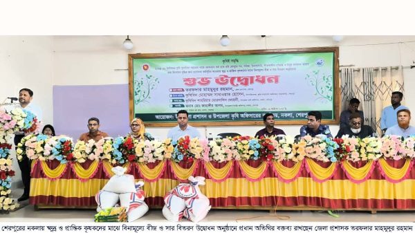 শেরপুরের নকলায় ২০২৫-২৬ অর্থবছরে রবি মৌসুমের বিভিন্ন কৃষিপণ্য উৎপাদন বৃদ্ধির লক্ষ্যে কৃষি প্রণোদনা কর্মসূচীর আওতায় ক্ষুদ্র ও প্রান্তিক কৃষকের মাঝে বিনামূল্যে বীজ ও রাসায়নিক সার বিতরণ কার্যক্রম উদ্বোধন করা হয়েছে।