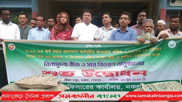 শেরপুরের নকলায় আমন ধানের উৎপাদন বৃদ্ধির লক্ষ্যে কৃষকের মাঝে বিনামূল্যে আমন ধানের বীজ ও রাসায়নিক সার বিতরণ করা হয়েছে। ২০২২-২৩ অর্থ বছরের খরিপ-২ এর ২০২৩-২০২৪ মৌসুমে কৃষি প্রণোদনা কর্মসূচির আওতায়