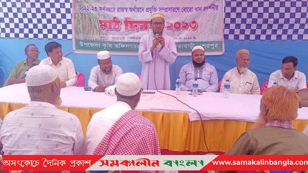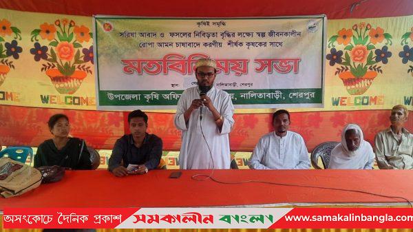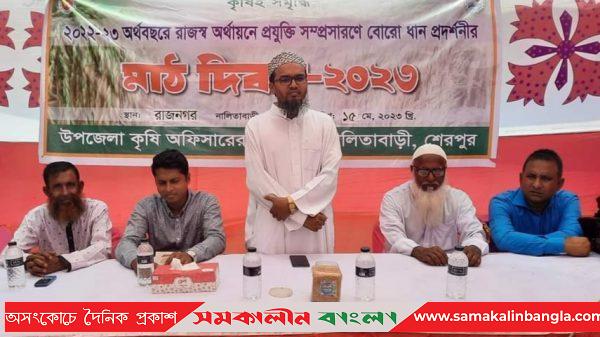 শেরপুরের নালিতাবাড়ীতে ২০২২-২৩ অর্থ বছরে বৃহত্তর ময়মনসিংহ অঞ্চলের ফসলের নিবিড়তা বৃদ্ধিকরণ প্রকল্পের আওতায় বোরো মৌসুমের বঙ্গবন্ধু ধান-১০০’র মাঠ দিবস অনুষ্ঠিত হয়েছে। মঙ্গলবার (৯ মে) কৃষি সম্প্রসারণ অধিদপ্তরাধীন নালিতাবাড়ী উপজেলা কৃষি