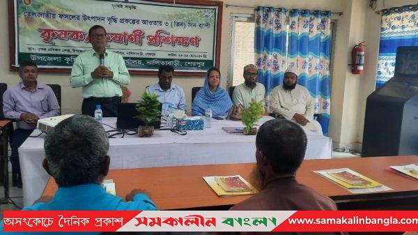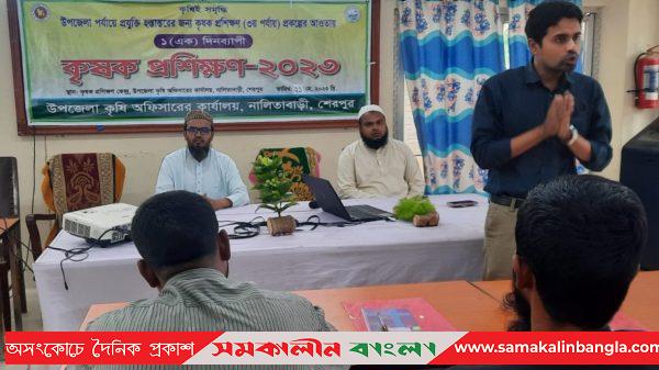 শেরপুরের নালিতাবাড়ীতে দিনব্যাপি কৃষক প্রশিক্ষণ অনুষ্ঠিত হয়েছে। রবিবার (১১ মে) উপজেলা পর্যায়ে প্রযুক্তি হস্থান্তরের জন্য কৃষক প্রশিক্ষণ (৩য় পর্যায়) প্রকল্পের আওতায় এ প্রশিক্ষণ কর্মশালা অনুষ্ঠিত হয়। কৃষি সম্প্রসারণ অধিদপ্তরের বাস্তবায়নে