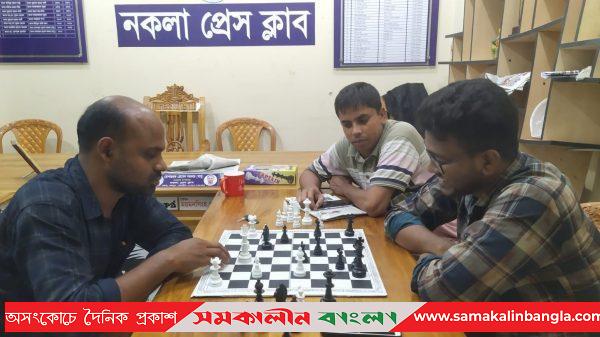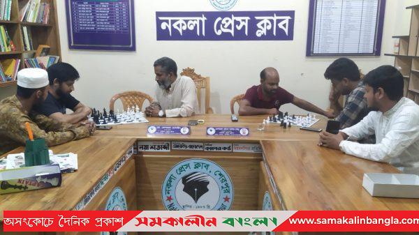 শেরপুরের নকলায় বিশ্ব দাবা দিবস-২০২৩ উপলক্ষে নকলা প্রেসক্লাবের উদ্যোগে দাবা প্রতিযোগিতা অনুষ্ঠিত হয়েছে। বৃহস্পতিবার (২০ জুলাই) রাতে প্রেস ক্লাব অফিসে এ দাবা প্রতিযোগিতা অনুষ্ঠিত হয়। খেলায় ৪ টিমে ৮ জন