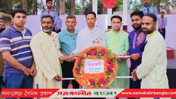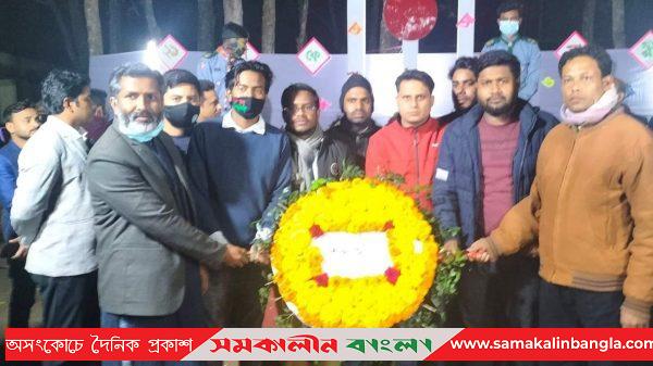 শেরপুরের নকলা মহান স্বাধীনতা ও জাতীয় দিবস-২০২২ উপলক্ষে নকলা প্রেস ক্লাবের উদ্যোগে বাঙালি জাতির পিতা বঙ্গবন্ধু শেখ মুজিবুর রহমান ও শহীদদের স্মরণে শহীদ মিনারে পুষ্পস্তবক অর্পণ করা হয়েছে। শনিবার (২৬