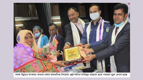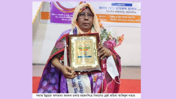 সমাজ উন্নয়নে অসামান্য অবদান রাখায় বিভাগীয় প্রথম ও শ্রেষ্ঠ জয়িতা হিসেবে আকিকুন নাহারকে সংবর্ধনা দেওয়া হয়েছে। ‘জয়িতা অন্বেষণে বাংলাদেশ’ শীর্ষক কার্যক্রমের আওতায় ময়মনসিংহ বিভাগের শ্রেষ্ঠ জয়িতাদেরকে বিভাগীয় সংবর্ধনা দেওয়া হয়।