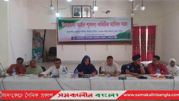 শেরপুরের নকলায় উপজেলা আইন শৃঙ্খলা কমিটির মাসিক সভা অনুষ্ঠিত হয়েছে। বৃহস্পতিবার সকালে উপজেলা পরিষদ হলরুমে উপজেলা প্রশাসনের আয়োজনে এ সভা অনুষ্ঠিত হয়। আইন শৃঙ্খলা কমিটির মাসিক এই সভার সভাপতিত্ব করেন
