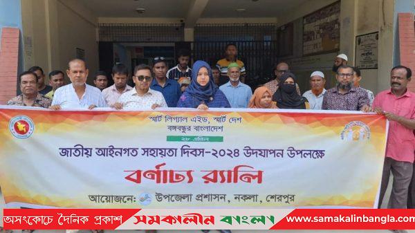জাতীয় আইনগত সহায়তা দিবস-২০২৪ উদযাপন উপলক্ষ্যে শেরপুরের নকলায় বর্ণাঢ্য র্যালি অনুষ্ঠিত হয়েছে। রবিবার (২৮ এপ্রিল) সকালে উপজেলা প্রশাসনের আয়োজনে র্যালিটি উপজেলা পরিষদ চত্বর থেকে শুরু হয়ে র্যালিটি বের হয়। র্যালিটির