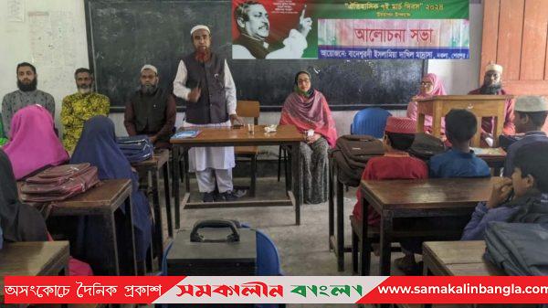শেরপুরের নকলা উপজেলার বিভিন্ন শিক্ষা প্রতিষ্ঠানে ঐতিহাসিক ৭মার্চ দিবস-২০২৪ যথাযোগ্য মর্যাদায় উদযাপন উপলক্ষ্যে আলোচনা সভা, কুইজ প্রতিযোগিতা ও পুরষ্কার বিতরণ করা হয়েছে। এর অংশ হিসেবে বৃহস্পতিবার বানেশ্বরদী ইসলামিয়া দাখিল মাদ্রাসা