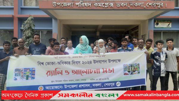 শেরপুরের নকলায় বিশ্ব ভোক্তা অধিকার দিবস উদযাপন উপলক্ষে র্যালি ও সংক্ষিপ্ত আলোচনা সভা অনুষ্ঠিত হয়েছে। শুক্রবার ‘স্মার্ট বাংলাদেশ গড়ি, ভোক্তার স্বার্থে কৃত্রিম বুদ্ধিমত্তা ব্যবহার করি’ এই প্রতিপাদ্যকে সামনে রেখে র্যালি