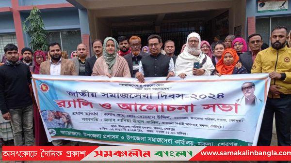 শেরপুরের নকলায় জাতীয় সমাজসেবা দিবস-২০২৪ উদযাপন উপলক্ষে র্যালি ও সংক্ষিপ্ত আলোচনা সভা অনুষ্ঠিত হয়েছে। “সমাজসেবায় গড়বো দেশ, স্মার্ট হবে বাংলাদেশ’’ এই প্রতিপাদ্যকে সামনে রেখে উপজেলা প্রশাসন ও সমাজসেবা কার্যালয়ের যৌথ