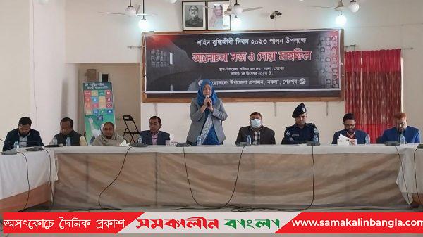 সারা দেশের ন্যায় শেরপুরের নকলায় শহীদ বুদ্ধিজীবী দিবস-২০২৩ যথাযোগ্য মর্যাদায় পালন উপলক্ষে বিভিন্ন কর্মসূচি বাস্তবায়ন করা হয়েছে। বৃস্পতিবার (১৪ ডিসেম্বর) দিনব্যাপী বিভিন্ন কর্মসূচি পালন করা হয়। কর্মসূচি সমূহের মধ্যে মহান