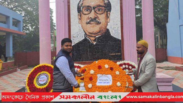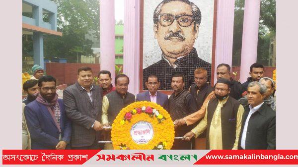 শেরপুরের নকলায় যথাযোগ্য মর্যাদায় শহীদ বুদ্ধিজীবী দিবস-২০২৩ উদযাপন উপলক্ষে নকলা পৌরসভা-এর উদ্যোগে বাঙালি জাতির পিতা বঙ্গবন্ধু শেখ মুজিবুর রহমান-এঁর প্রতিকৃতিতে পুষ্পার্ঘ্য অর্পণ করা হয়েছে। বৃহস্পতিবার (১৪ ডিসেম্বর) উপজেলা পরিষদ প্রাঙ্গনে