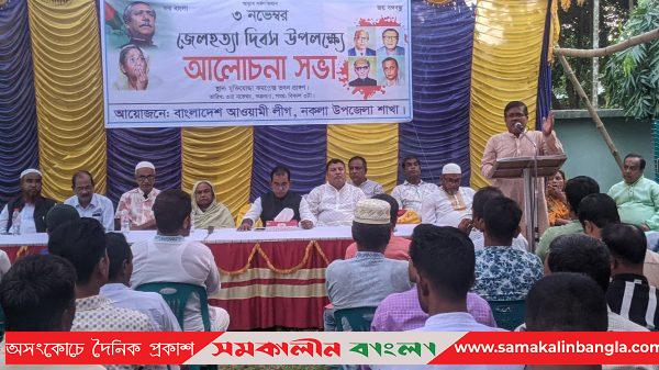 শেরপুরের নকলায় জেলহত্যা দিবস-২০২৩ উপলক্ষে আলোচনা সভা অনুষ্ঠিত হয়েছে। শুক্রবার (৩ নভেম্বর) বিকেলে উপজেলা মুক্তিযোদ্ধা কমপ্লেক্স চত্বরে উপজেলা আওয়ামী লীগের সভাপতি আম্বিয়া খাতুনের সভাপতিত্বে এ আলোচনা সভা অনুষ্ঠিত হয়। এতে