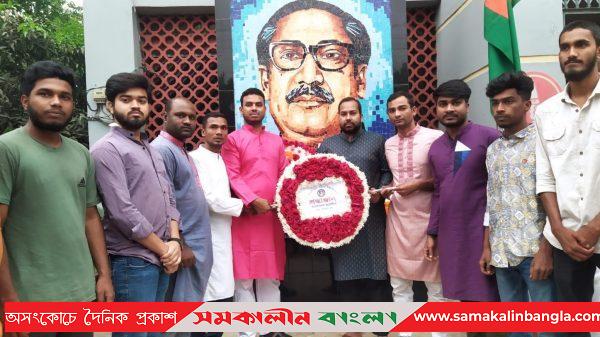 শেরপুরের নকলায় বাঙালি জাতির পিতা বঙ্গবন্ধু শেখ মুজিবুর রহমান-এঁর ১০৩ তম জন্মবার্ষিকী ও জাতীয় শিশু দিবস যথাযোগ্য মর্যাদায় উদযাপন উপলক্ষ্যে, পৌরওয়ার্ড আওয়ামী লীগের আয়োজনে বঙ্গবন্ধু শেখ মুজিবুর রহমান-এঁর প্রতিকৃতিতে পুষ্পার্ঘ্য