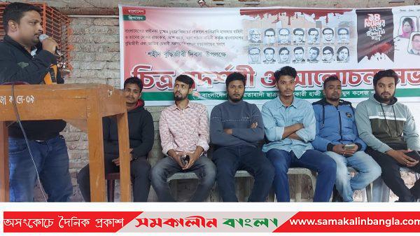 শেরপুরের নকলায় শহিদ বুদ্ধিজীবী দিবস-২০২৪ পালন উপলক্ষ্যে শহিদ বুদ্ধিজীবী দিবসের তাৎপর্য বিষয়ক চিত্র প্রদর্শনী ও আলোচনা সভা অনুষ্ঠিত হয়েছে। শনিবার (১৪ ডিসেম্বর) সকালে সরকারি হাজী জালমামুদ কলেজে বাংলাদেশ জাতীয়তাবাদী ছাত্রদল