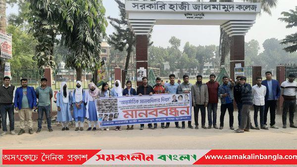 আন্তর্জাতিক মানবাধিকার দিবস উপলক্ষে শেরপুরের নকলায় সরকারি হাজী জালমামুদ কলেজ ছাত্রদলের আয়োজনে মানববন্ধন কর্মসূচি পালন করা হয়েছে। মঙ্গলবার দুপুরের দিকে সরকারি হাজী জালমামুদ কলেজের সামনে নকলা-চন্দ্রকোনা আঞ্চলিক সড়কে ঘন্টাব্যাপী এ