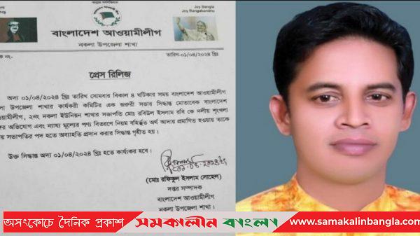 শেরপুরের নকলা উপজেলার ২নং নকলা ইউনিয়ন আওয়ামী লীগের সভাপতি মো. রবিউল ইসলাম রবি-কে দলীয় শৃংখলা ভঙ্গের অভিযোগে এবং ন্যায্য মূল্যের পণ্য বিতরণে নিয়ম বহির্ভূত অর্থ আদায় করার অভিযোগ প্রমাণিত হওয়ায়