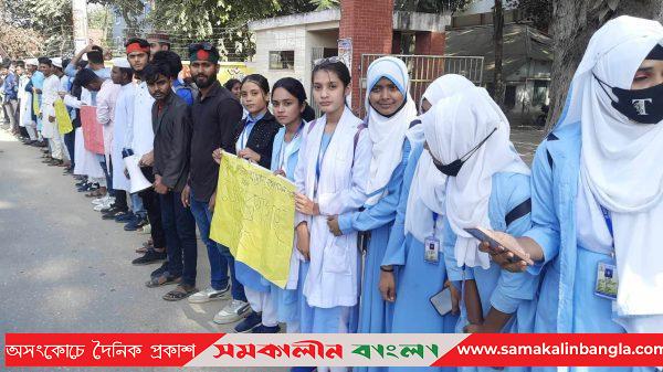 শেরপুরের নকলায় পরপর কয়েকটি মর্মান্তিক সড়ক দূর্ঘটনায় মর্মাহত হয়ে নিরাপদ সড়কের দাবিতে মানববন্ধন করেছে উপজেলার বিভিন্ন স্তরের শিক্ষার্থীর। সোমবার দুপুরের দিকে ছাত্র সমাজের উদ্যোগে ও আয়োজনে পৌর শহরের জনবহুল বিভিন্ন