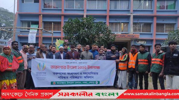 শেরপুরের নকলায় তারুণ্যের উৎসব-২০২৫ উপলক্ষে তরুণদের অংশগ্রহণ ও সহযোগিতায় পরিস্কার পরিচ্ছন্নতা অভিযান পরিচালনা করা হয়েছে। বৃহস্পতিবার (২ জানুয়ারি) উপজেলা প্রশাসনের আয়োজনে ‘এসো দেশ বদলাই, পৃথিবী বদলাই’ এই প্রতিপাদ্যে উপজেলা পরিষদ