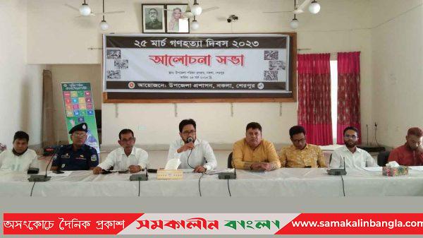 শেরপুরে নকলায় যথাযোগ্য মর্যাদায় ২৫ মার্চ গণহত্যা দিবস পালিত হয়েছে। এ উপলক্ষ্যে ২৫ মার্চ (শনিবার) উপজেলা প্রশাসনের আয়োজনে উপজেলা পরিষদ মিলনায়তনে এক আলোচনা সভা অনুষ্ঠিত হয়। উপজেলা নির্বাহী কর্মকর্তা (ইউএনও)