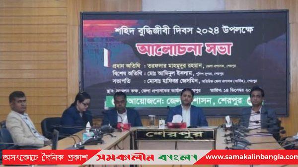 শেরপুরে শহিদ বুদ্ধিজীবী দিবস-২০২৪ পালন উপলক্ষ্যে ‘শহিদ বুদ্ধিজীবী দিবসের তাৎপর্য শীর্ষক’ এক আলোচনা সভা অনুষ্ঠিত হয়েছে। শনিবার (১৪ ডিসেম্বর) সকালে জেলা প্রশাসকের কার্যালয়ের সম্মেলন কক্ষ রজনীগন্ধায় অনুষ্ঠিত উক্ত আলোচনা সভায়