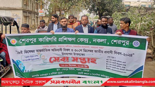 ১৮ ডিসেম্বর আন্তর্জাতিক অভিবাসী দিবস ও ৩০ ডিসেম্বর জাতীয় প্রবাসী দিবস-২০২৪ উদযাপন উপলক্ষ্যে শেরপুরের নকলা উপজেলাস্থ শেরপুর সরকারি কারিগরি প্রশিক্ষণ কেন্দ্র (টিটিসি)-এর আয়োজনে সেবা সপ্তাহ (১২ ডিসেম্বর থেকে ১৮ ডিসেম্বর)