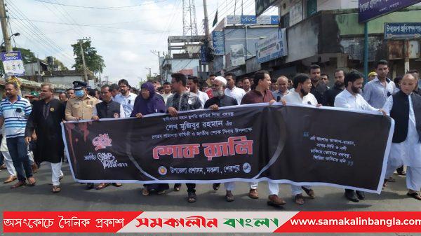 সারা দেশের ন্যায় শেরপুরের নকলায় জাতীয় শোক দিবস ও বঙ্গবন্ধু’র ৪৭তম শাহাদৎ বার্ষিকী যথাযোগ্য মর্যাদায় পালন উপলক্ষে “বঙ্গবন্ধু শিক্ষা ও গবেষণা পরিষদ” নারী ইউনিট-এর উদ্যোগে বাঙালি জাতির পিতা বঙ্গবন্ধু শেখ